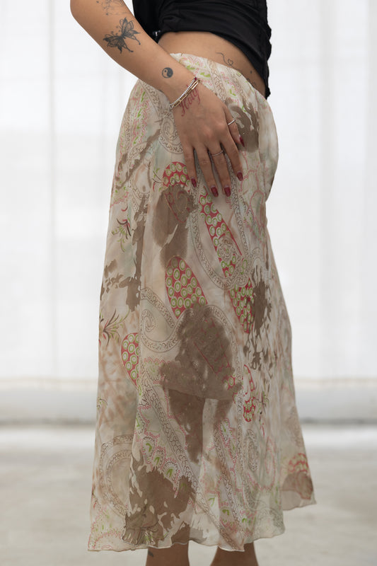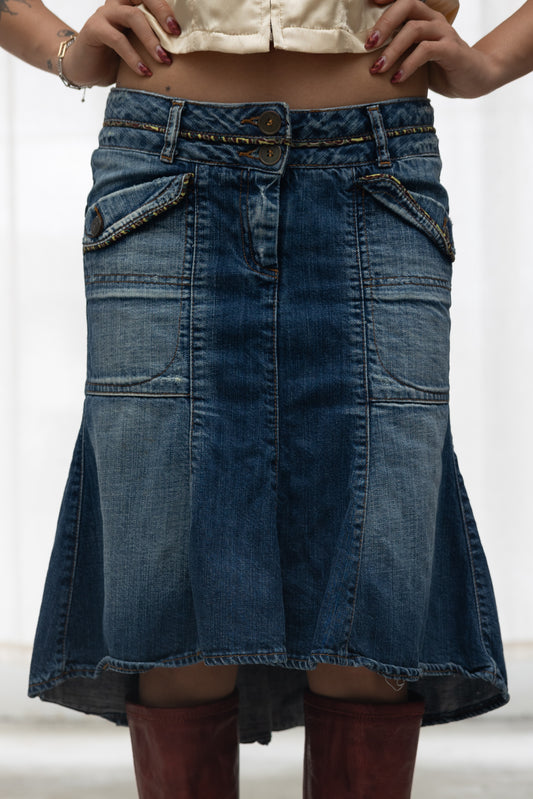 River Island Brown Pin Striped w/ Lace Asymmetrical Skirt