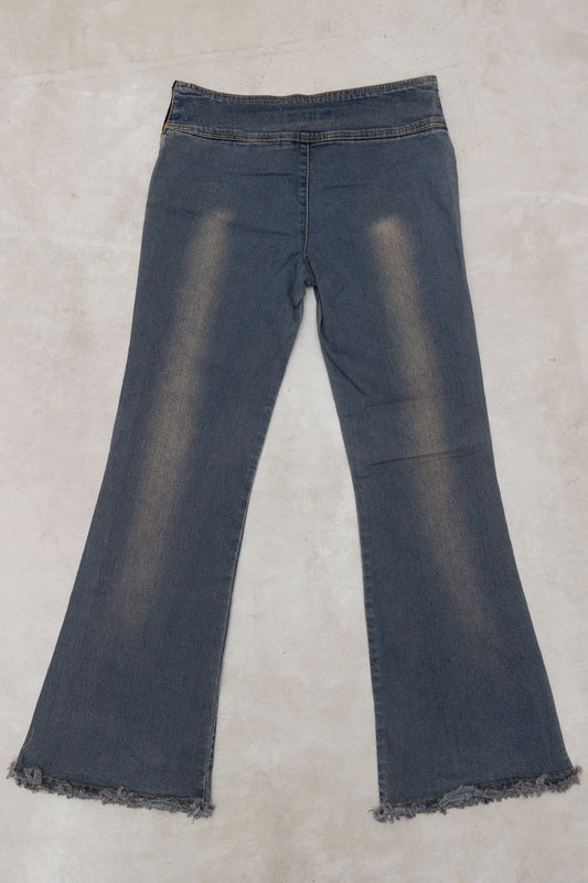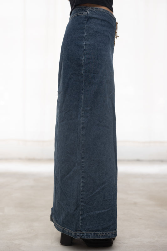 suede lace up denim maxi skirt