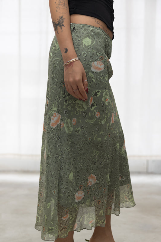 Sold outmoss green floral maxi skirt