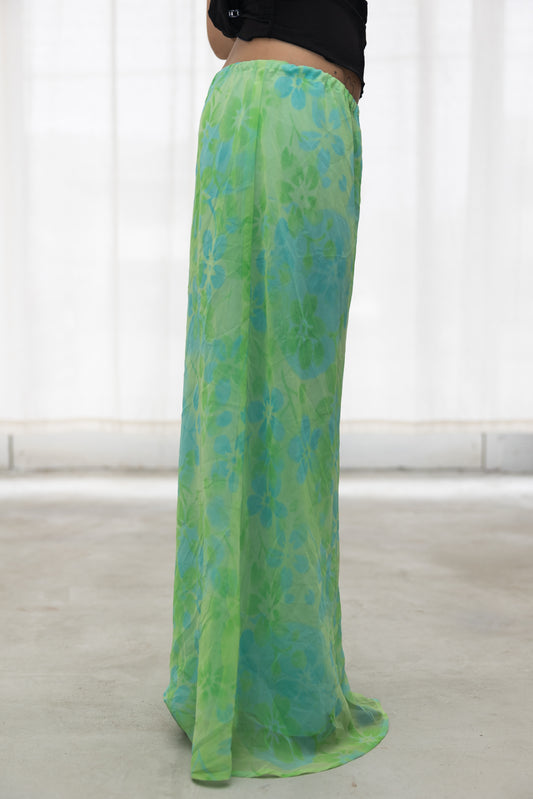 green and teal tropical maxi skirt