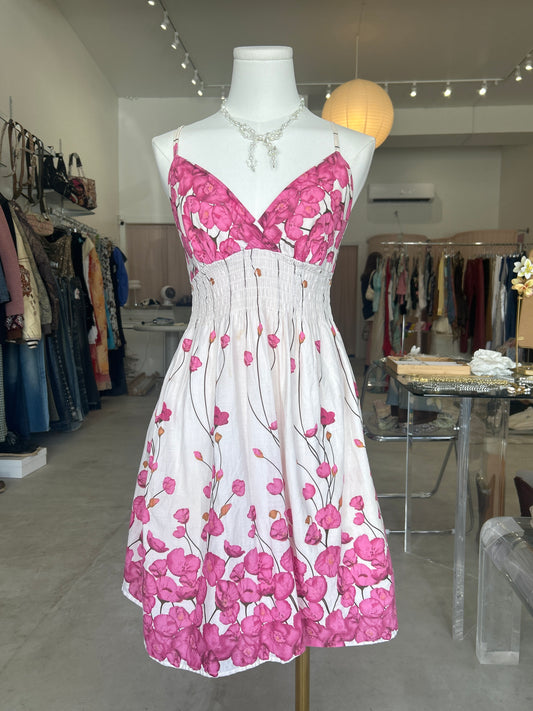 Bellani Paris Pink Floral Asymmetrical Cami Dress with Rope Belt