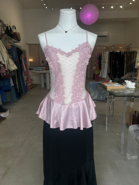 Pink Embroidery Mesh Cami