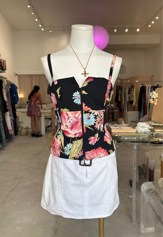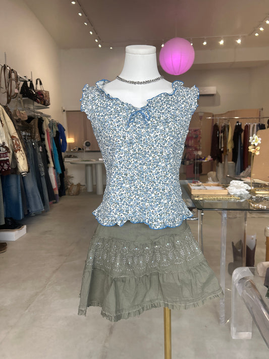 Amo amas ama Blue Floral Textured Sleeveless Top