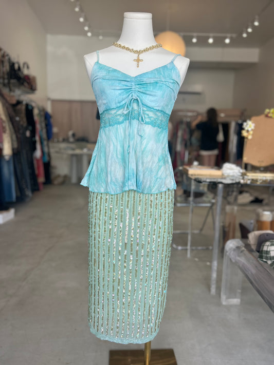 Yoon Me Turquoise Cinched with Tie and lace Cami Top