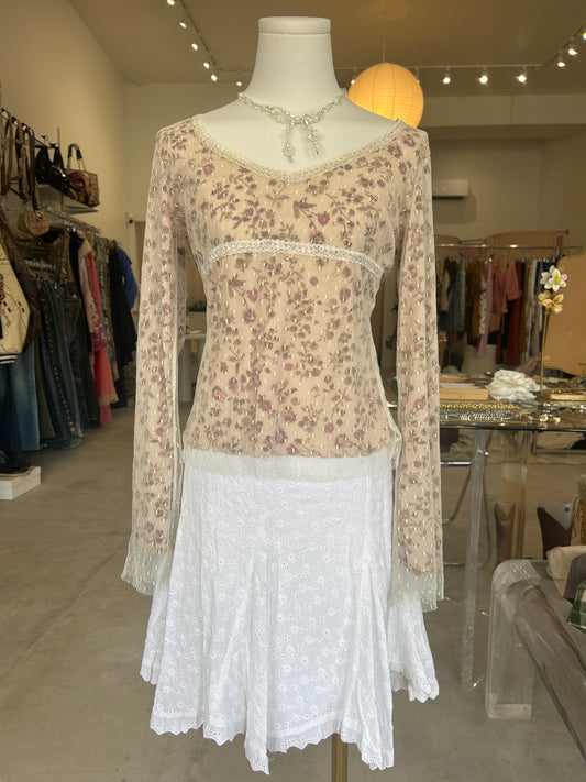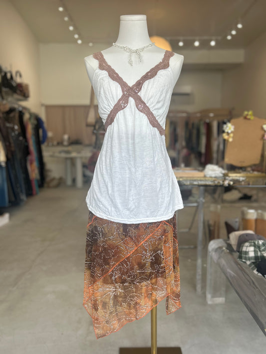 Meleose White and Brown Lace Sequin Trim V Cami Top