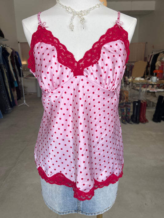 Candies Intimates Pink & Red Poka Dot Lace Trim Cami