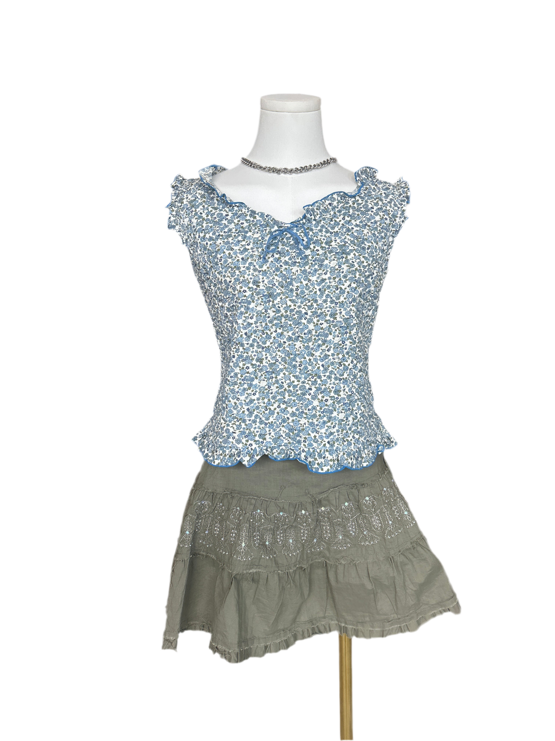 Amo amas ama Blue Floral Textured Sleeveless Top