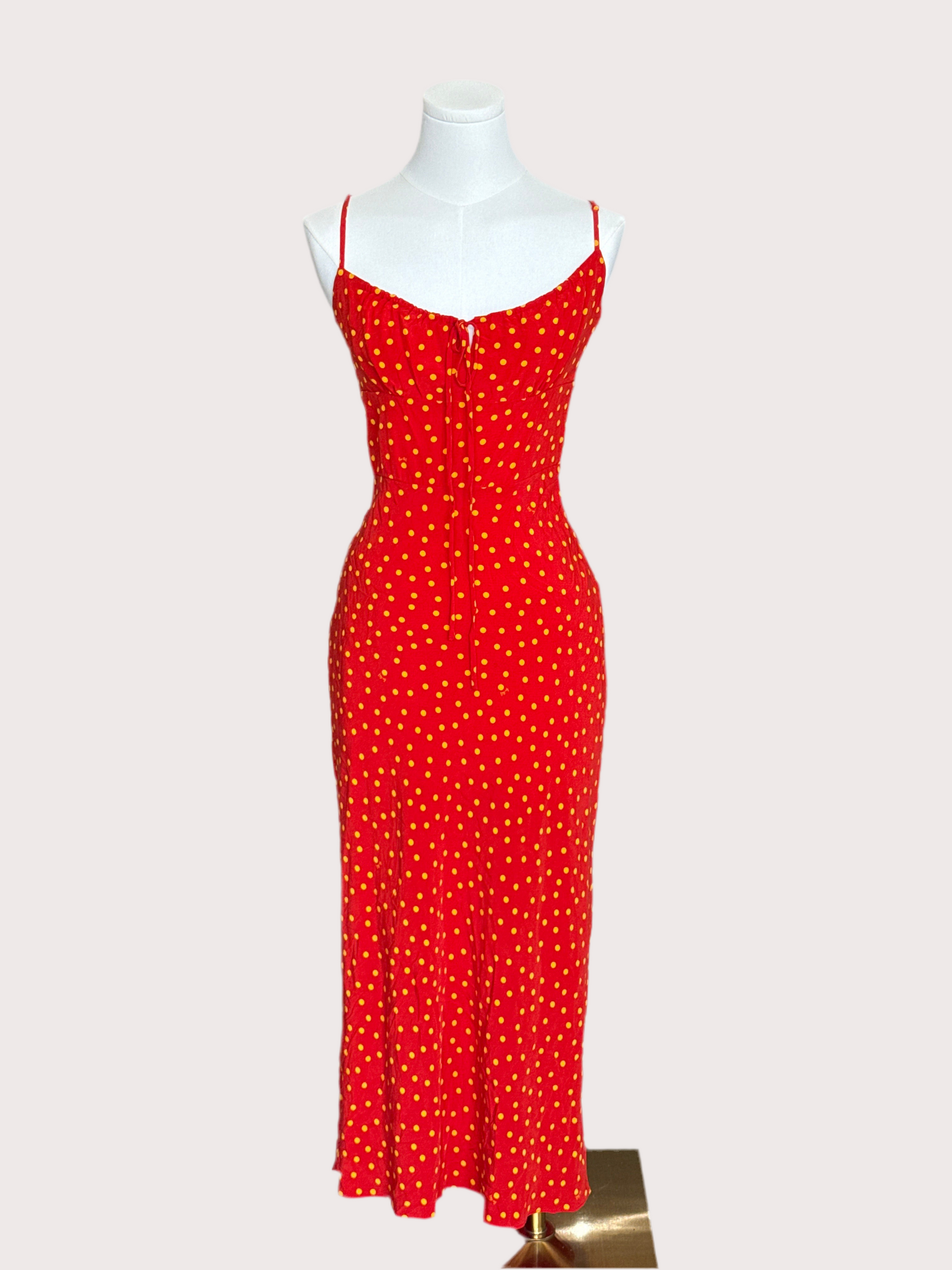 Realisation Par Red/Yellow Poka Dot Spaghetti Strap Long Dress