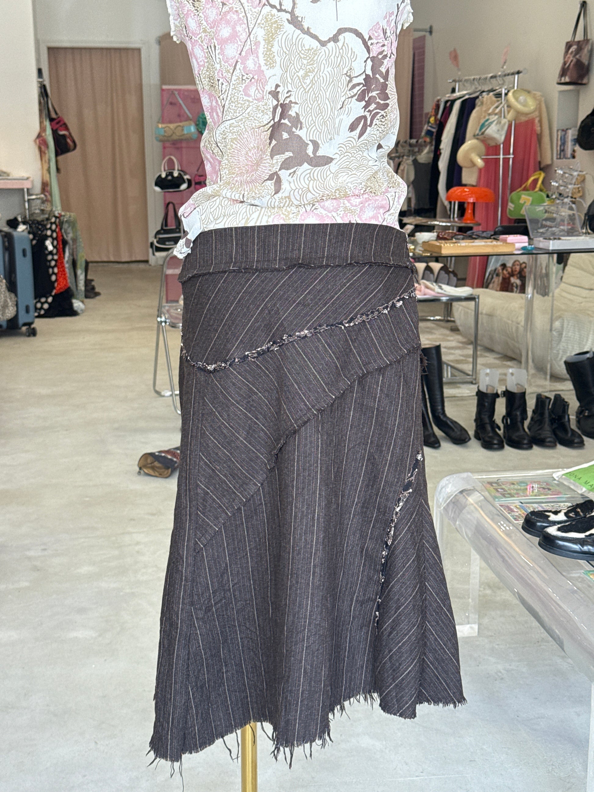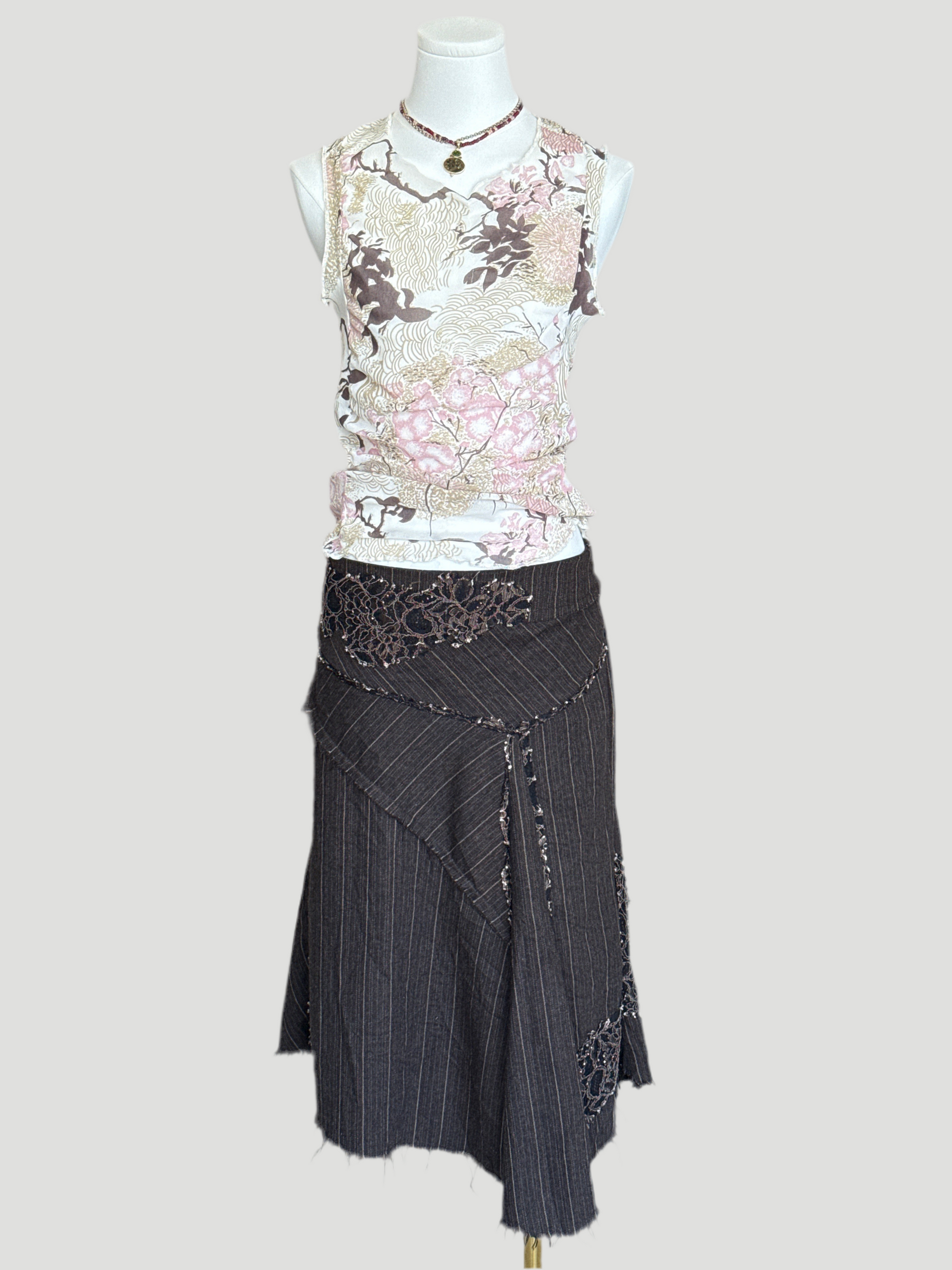 River Island Brown Pin Striped w/ Lace Asymmetrical Skirt