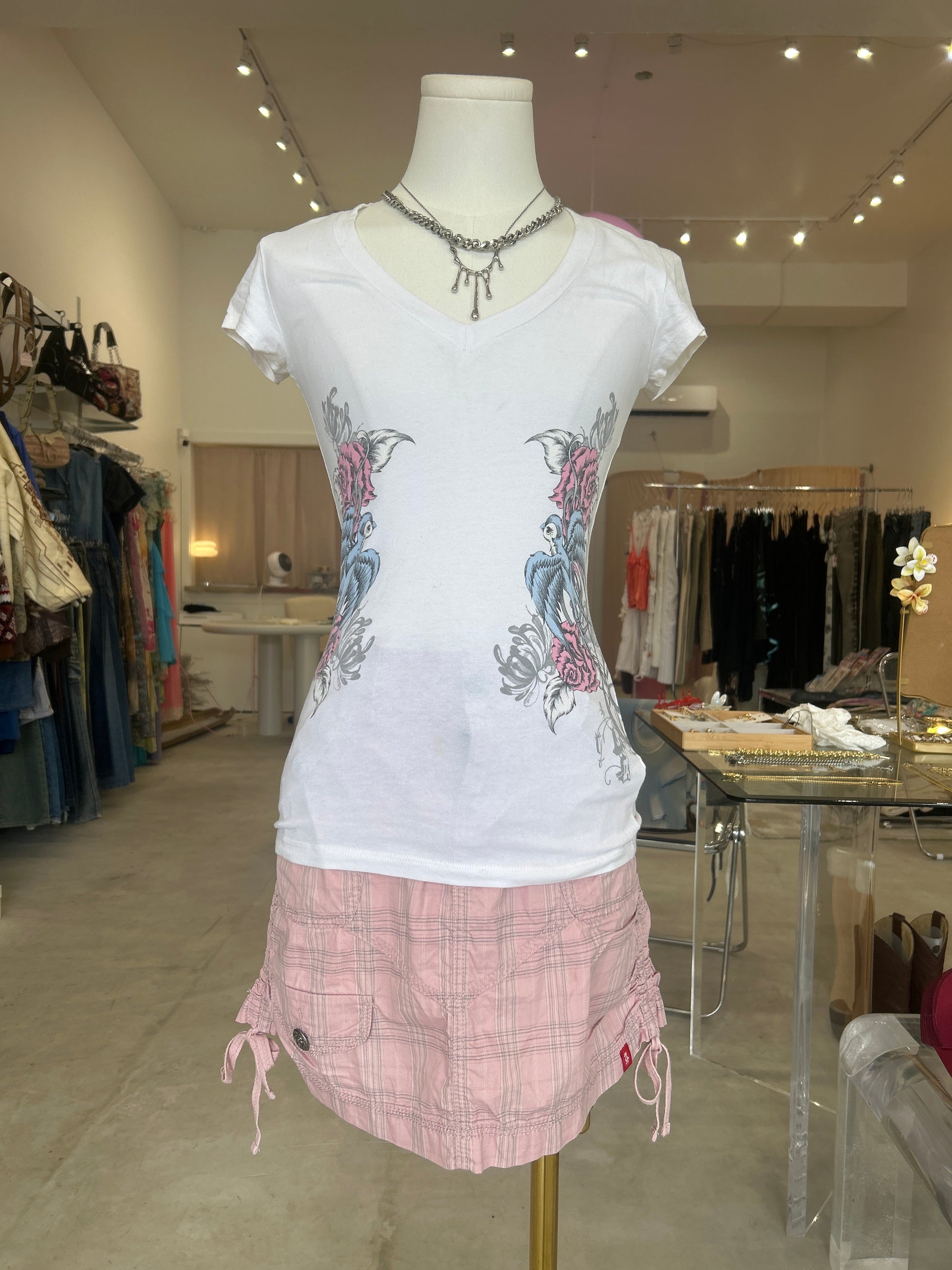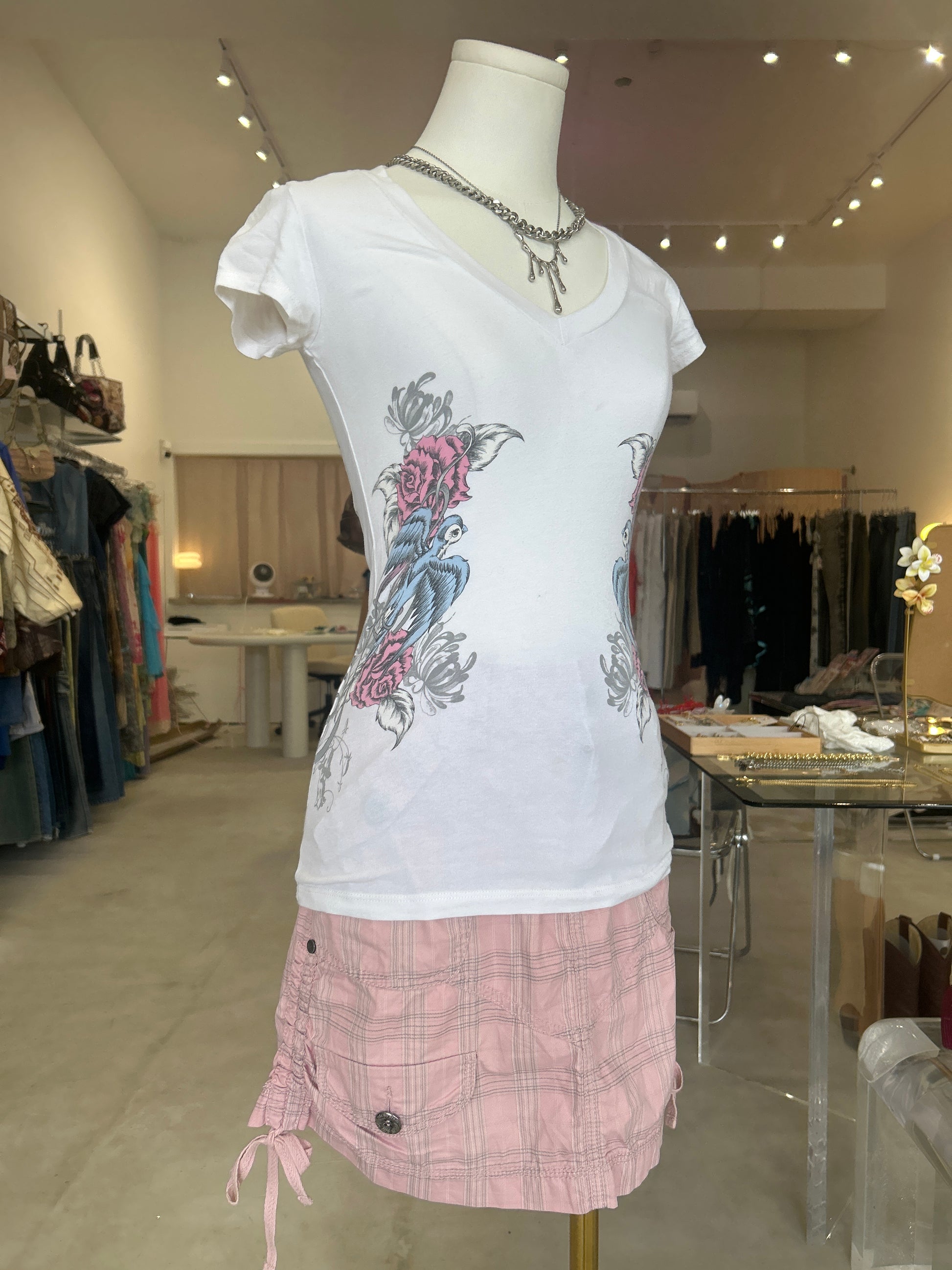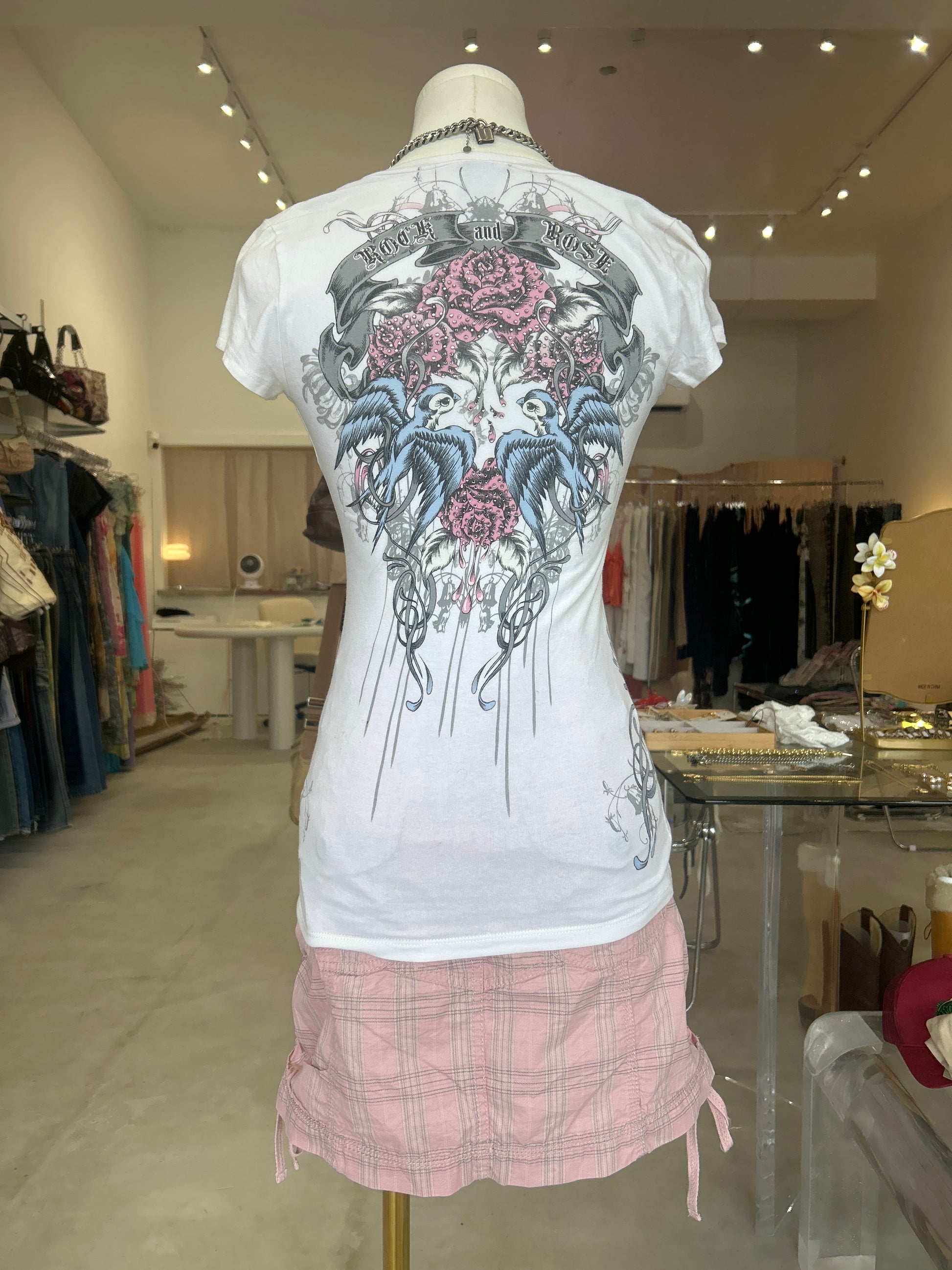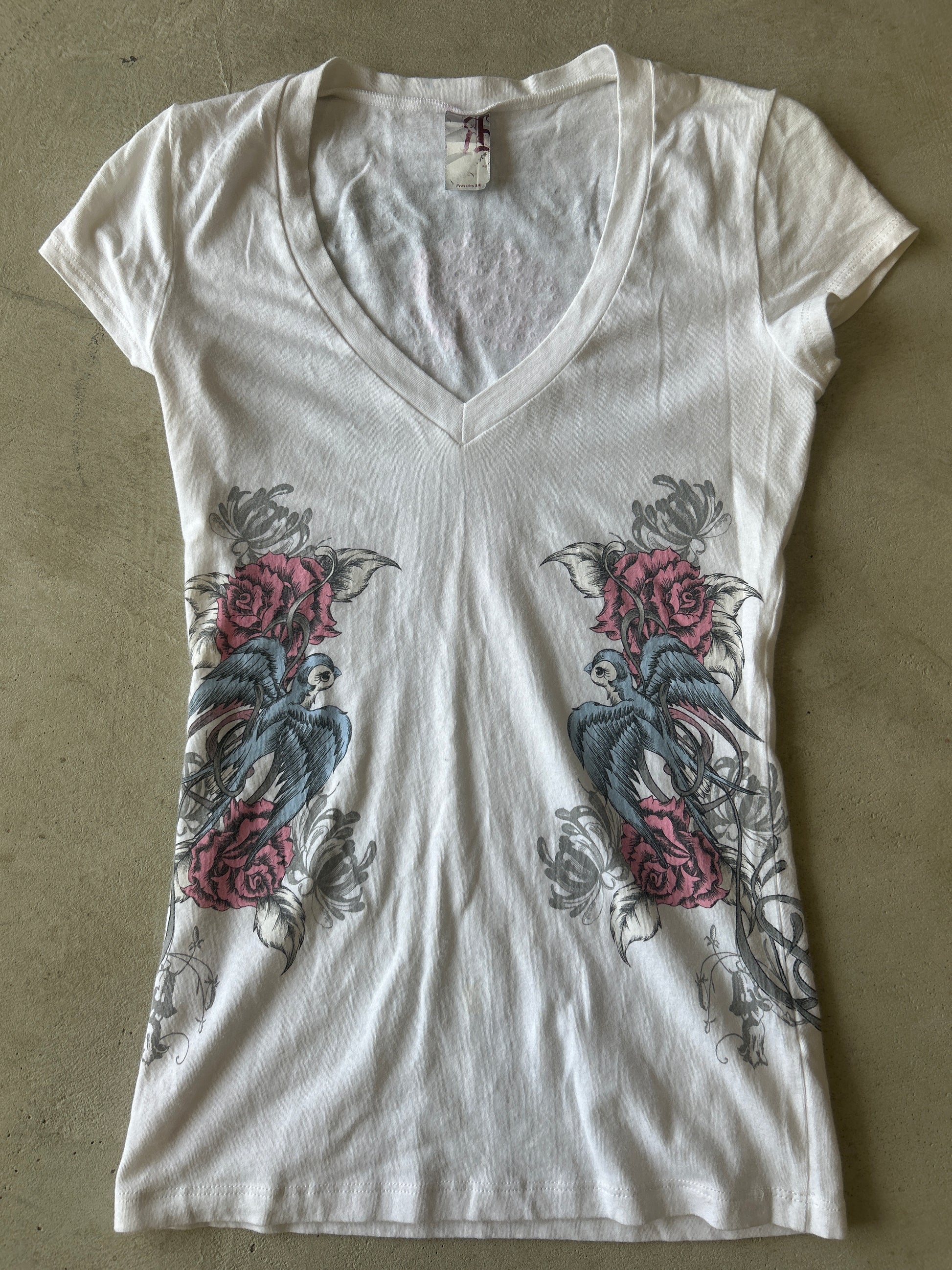 Rock & Rose Birds White V Neck T-ShirtRegular price $32.00 USDRegular priceUnit price / per-