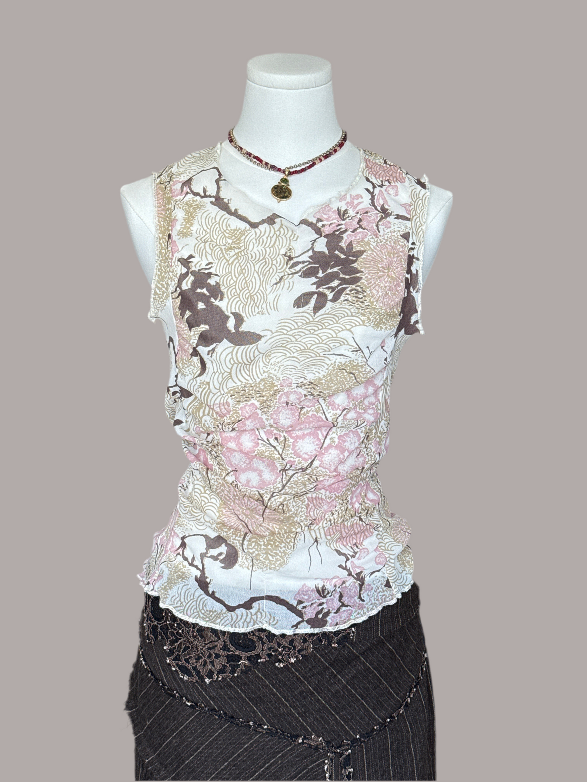 Twice Pink Cherry Blossom Print Sleeveless Shear Top