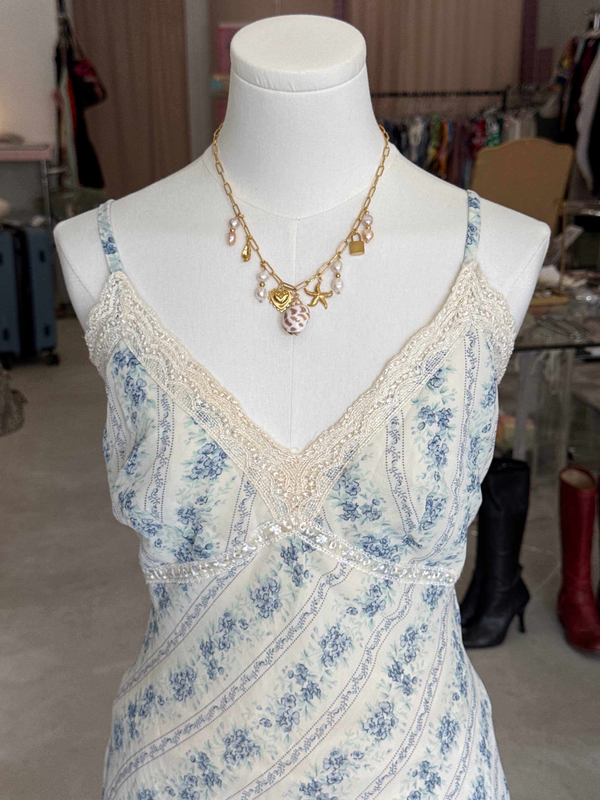 Vero Moda White/Blue Floral Spaghetti Strap Dress